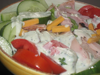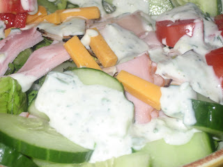That salad looks good! I was wondering how ranch dressing was made. I like the use of the fresh herbs in it.