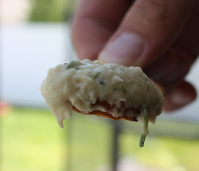 I’ve made this dip a few times now and it is one of my favorites. I normally toast up some pita wedges for dipping but this time I used up some leftover Garlic & Rosemary Ciabatta Crisps I picked up at Costco. If you find these you must buy them! They are so delicious and perfect for any spreadable cheese or dip.