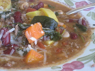 Today, something got me in the mood to cook. Maybe it’s knowing that Larry will be home late tonight and will probably be hungry after his flight. Maybe it was the lack of cooking for the past 3 days…and the fully stocked veggie drawer calling my name. But let’s be real, it doesn’t take much to get me in the mood to cook. I had picked up some zucchini, squash and fresh spinach at the farmer’s market over the weekend and it was time to cook it up. I needed some good comfort food and minestrone soup was it.