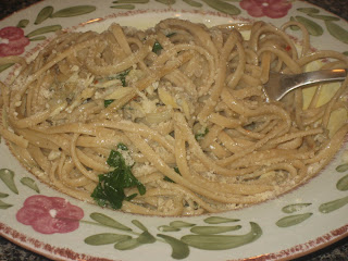 I am off to my son’s preschool’s Halloween Festival with a big bowl of Spiced Popcorn Snack Mix (without the heat)…but before I leave, here’s another easy Rachael Ray recipe that I dug up in my photo archives. I make this one pretty often, I usually have most of the ingredients already in my pantry (including the anchovies…I’m one of the few people out there who actually like them!). But seriously, don’t be afraid of the anchovies in this recipe…they melt into the oil and add so much flavor to the light sauce on this pasta.